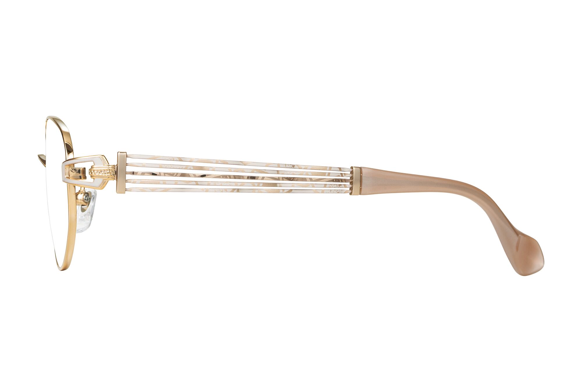 大きめのたっぷりしたレンズシェイプ。ヨロイにあしらわれたバックルデザインが上品に目元を引き締めます。フロントとサイドのコーディネートカラーもお楽しみいただけます。 ラインアート シャルマンの掛け心地は、エクセレンスチタンの軽くてしなやかなフィット感により、掛けていることを忘れてしまうような心地よさが特徴です。